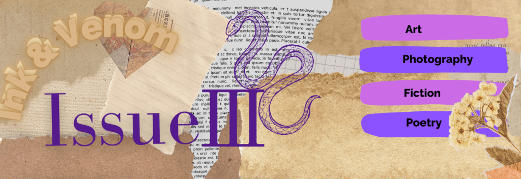 When our team is putting together an issue, we have a lot of things to worry about. How many submissions do we need? Who’s writing the ad for the announcements? Is the district gonna block us again? But thanks to all of you wonderful people, we have never had to worry about receiving bad work. Our school is talented, dedicated, and we take our job of displaying that talent very seriously. But really, it’s all due to you. So thank you. Thank you for being brave enough to share your wonderful work with us. This magazine lives on for you; we sincerely hope you enjoy the read. Sincerely, The Team of INK & VENOM